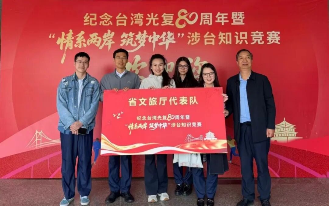 近日,由省委台办主办的纪念台湾光复80周年暨“情系两岸 筑梦中华”涉台知识竞赛在西北政法大学成功举办。省委常委、省委统战部部长李明远,省委台办主任姚金川,西北政法大学校党委书记赵万东,校长范九利等领导嘉宾出席活动。经过多轮激烈角逐,陕西省文化和旅游厅代表队最终凭借出色的表现荣获团体三等奖,2号选手武彤荣获优秀选手奖。