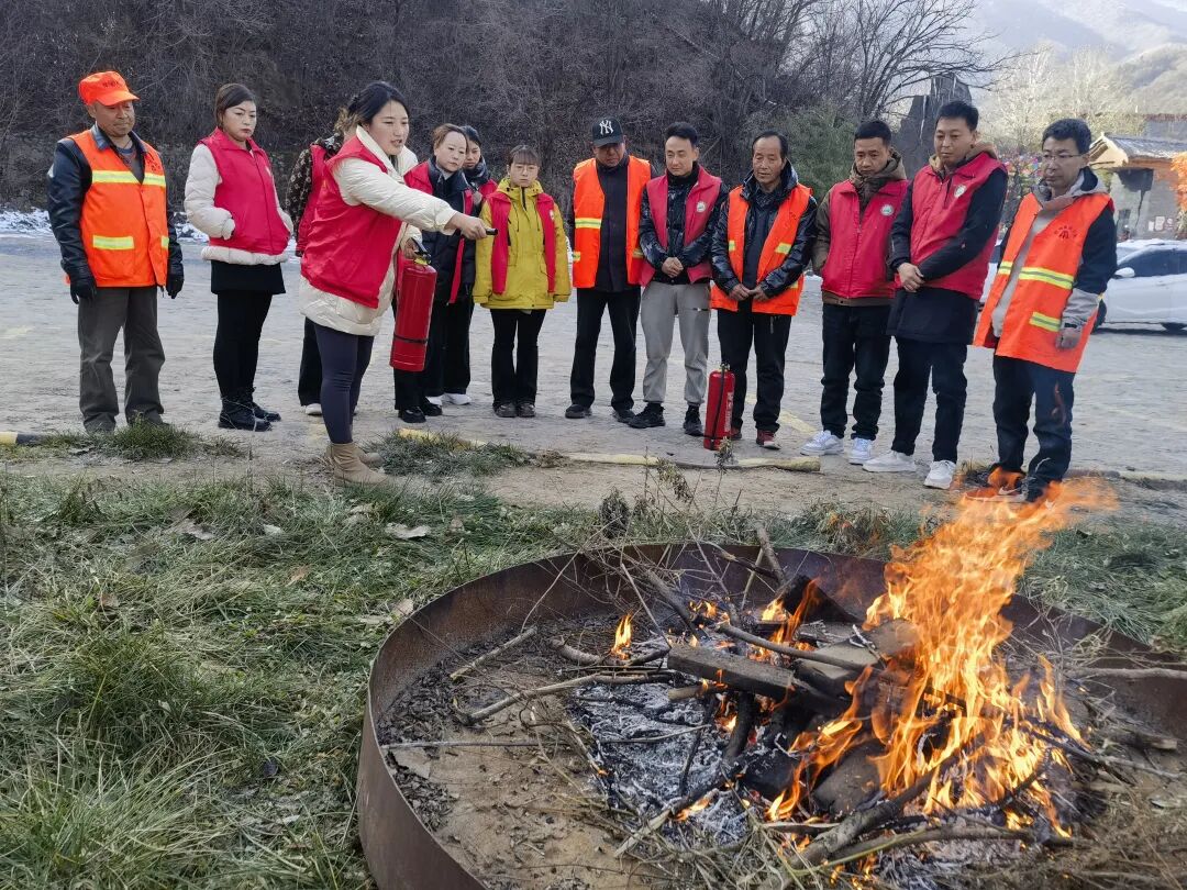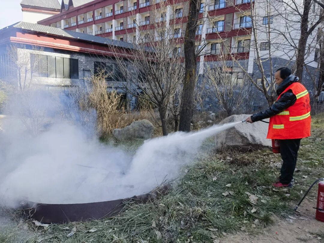 实战演练:练好技能“防火功” 11月30日上午10点,景区游客服务中心对面停车场旁,防火实战演练准时开展。安全环卫部经理谢金萍现场讲解灭火器的构造、使用原理及“提、拔、握、压”四字操作要领,指导员工实操。 “对准火焰根部,保持安全距离!”在谢经理的指导下,员工们依次上前,熟练完成灭火器操作,真切感受灭火过程,将理论知识转化为实战能力。