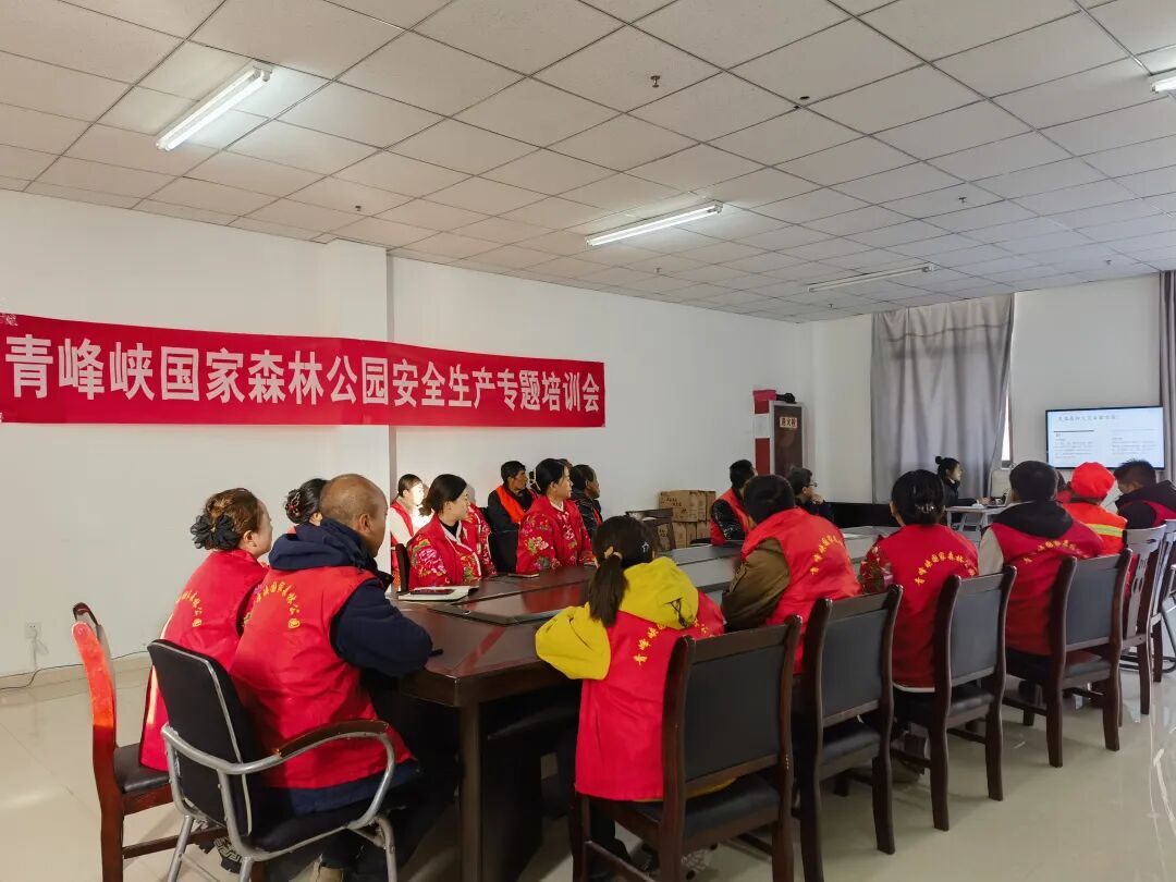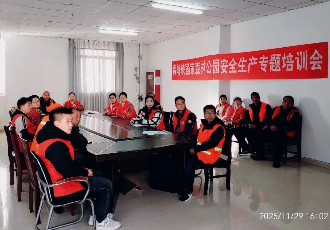 秋冬干燥,防火先行。为切实筑牢森林安全防线,守护景区生态与游客安全,青峰峡景区于2025年11月29日至30日集中开展森林防火专项培训及实战演练,以“学”“练”结合的方式,拧紧森林防火“安全阀”。 11月29日下午,景区办公室组织全体员工召开森林防火培训会议。青峰峡景区行政总监牛佳丽首先强调了本次会议的重要性——“森林防火关乎景区生态安全与游客生命安全,容不得半点马虎“,并明确会议纪律,宣布培训正式开始。